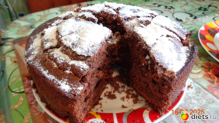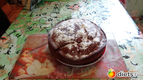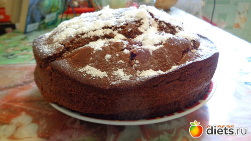 5. Теперь хорошо перемешиваем все ингредиенты во второй ёмкости, которую мы заранее подготовили. Заливаем пирог шоколадной смесью и оставляем на 40-60 минут в закрытой выключенной духовке или мультиварке. (Можно оставить пирог на ночь, так он будет еще вкуснее и сочнее.)