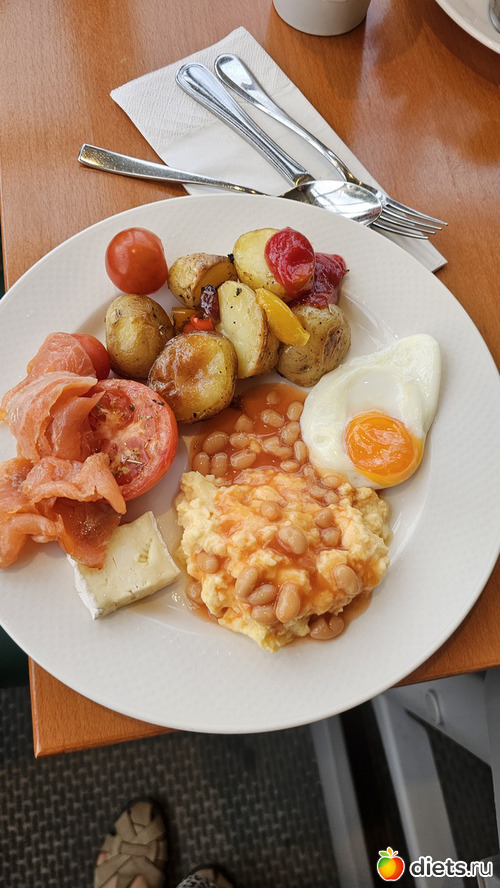 Только мой завтрак. Яйцо, омлет, картошка, фасоль, помидоры свежие и тушеные, кетчуп, сыр