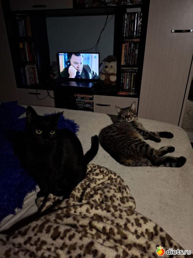 А если в туалет встаю, за мной оба хвостиками идут, потом несу обоих в кровать, а Барся такой тяжёленький уже