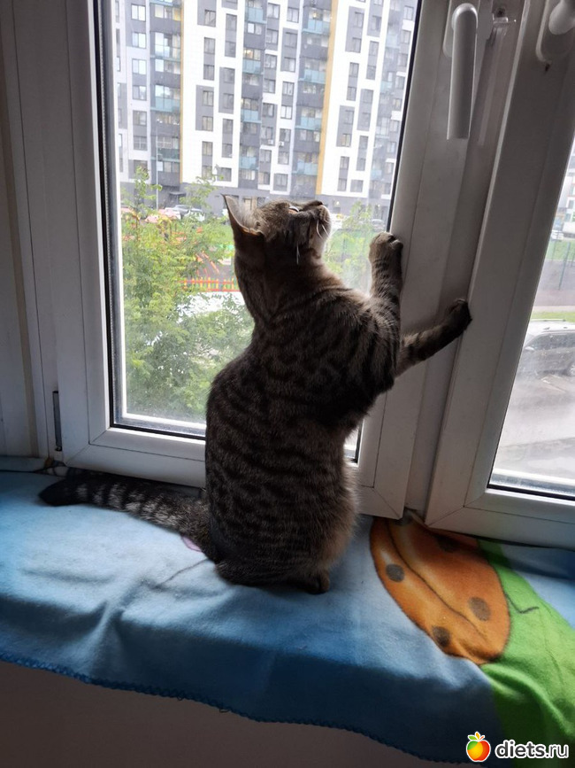 Барся охотился за мошкой за окном