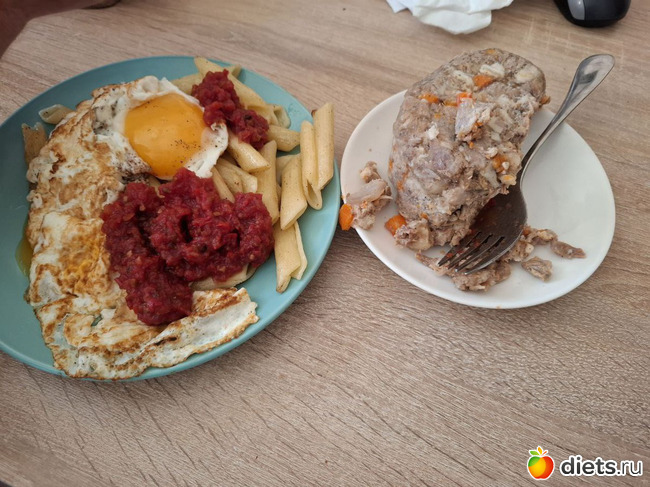 Макароны с яйцами, домашняя аджика, домашняя ветчина