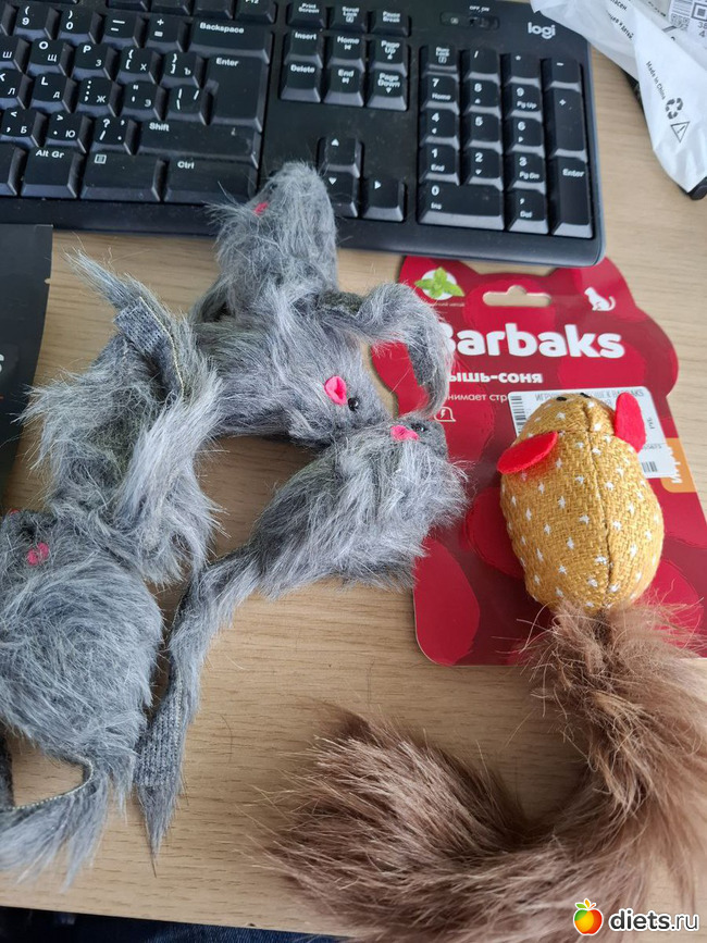 Мышки – с Озона, а большая мыша – из Зоомагазина Зоозаврик. У Фильки была такая, он её начал на кусочки драть, а котятки домучили, больше такую большую и с прочным хвостом не видела, а тут попалась. Играть пока ничего не давала, а то было бы сегодня не 4,5 часа сна, а 0