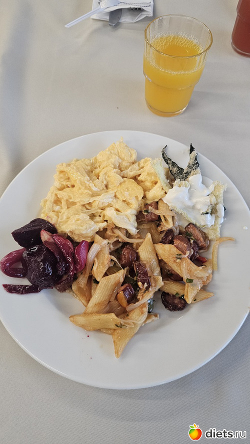 Омлет, макароны, запеченая свекла с луком, запеченая цуккини с сыром и соусом, все божественно вкусно, даже овощи!
