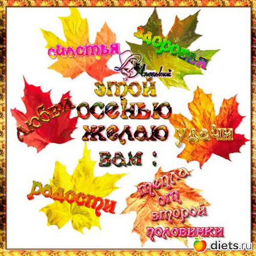 Желаю яркой, красочной, удивительной, волшебной, радостной, счастливой, доброй, весёлой, сказочной, необыкновенной, чарующей, замечательной осени, которая подарит тебе вдохновение, нежные мечты, светлые надежды и тёплые улыбки.