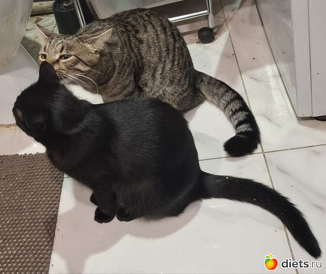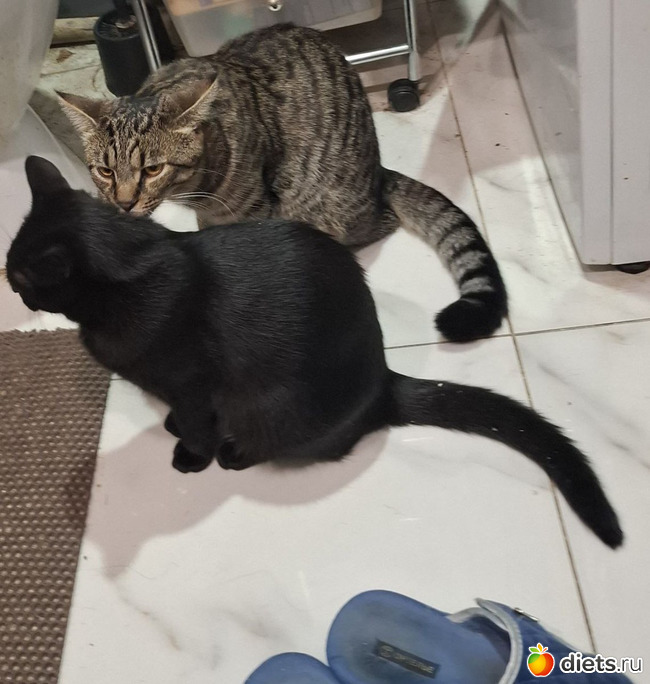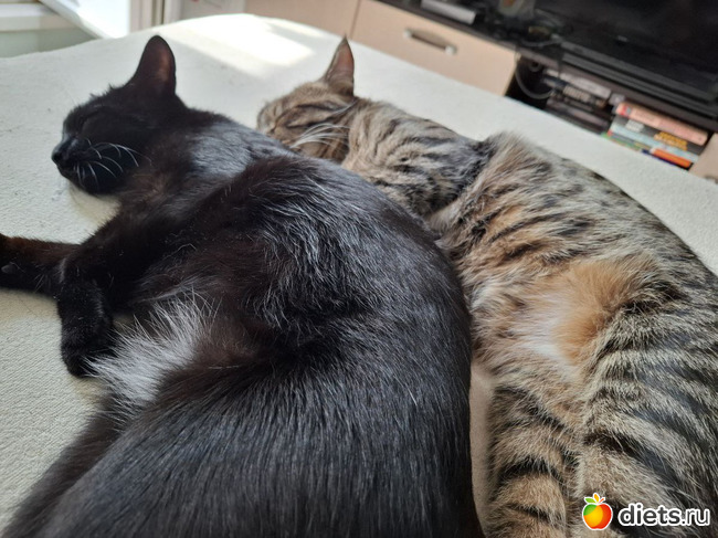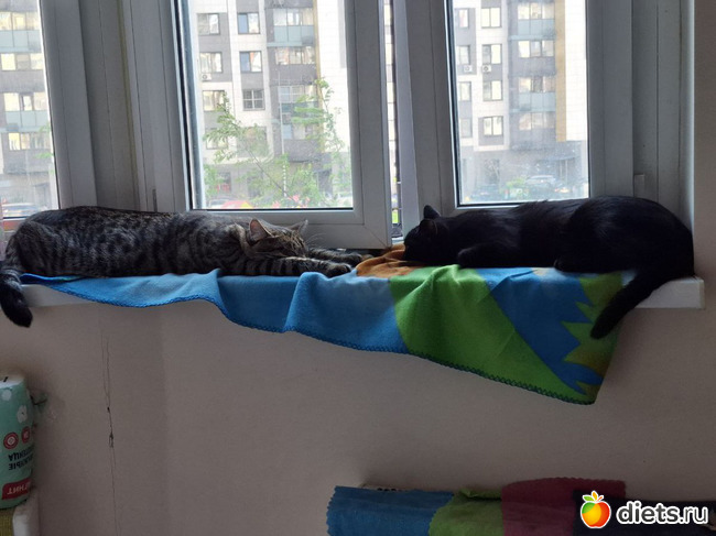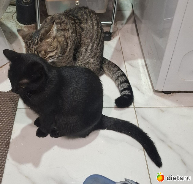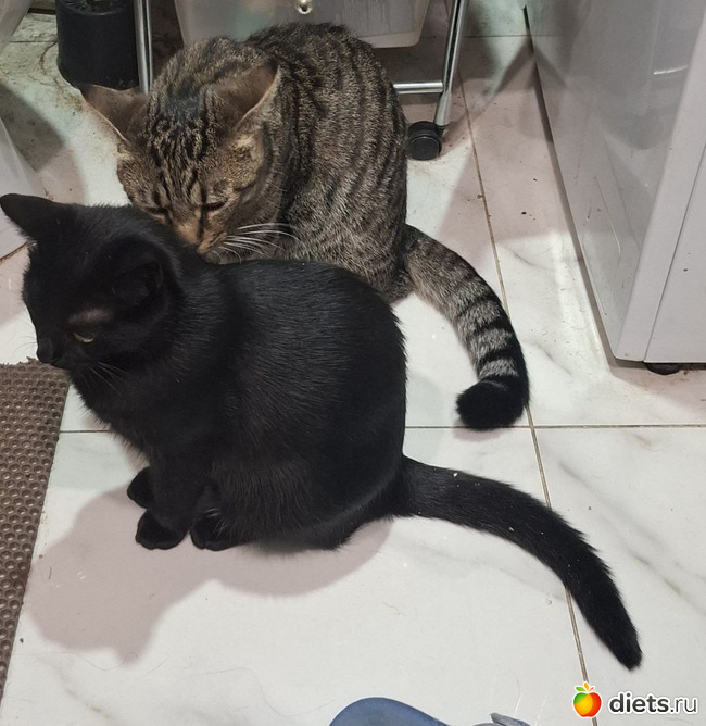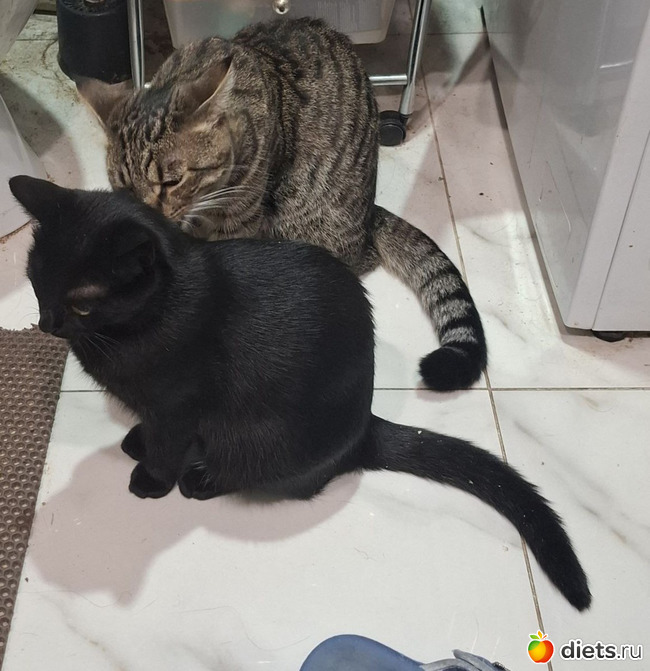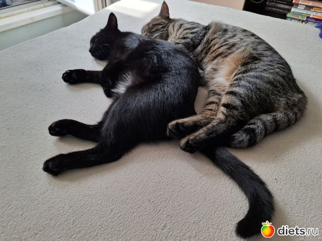 Котики уже совсем большие. Весело им вдвоём. Нашему бы рыжему тоже было бы неплохо компанию завести, но мы ж периодически в разъездах, двух животных проблематично пристраивать на передержку.