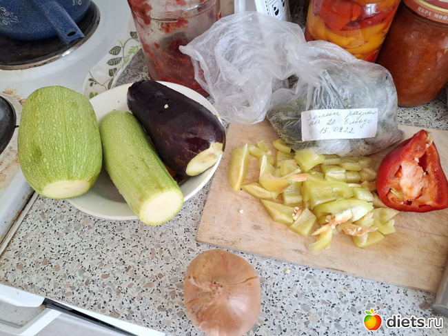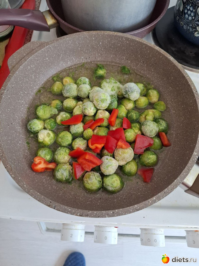 Готовила рагу: брюссельская капуста (я её обожаю), перец болгарский, кабачки, баклажан, лук. Укроп замороженный. Вкуснота!!!