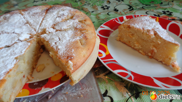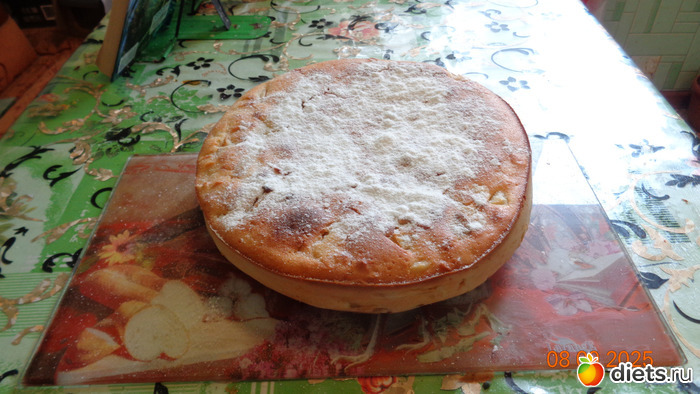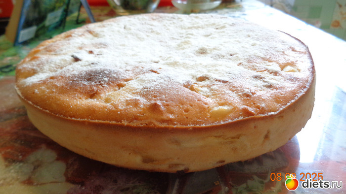 5. Когда пирог с яблоками будет готов, дать ему остыть, а затем достать из формы. По желанию можно украсить сахарной пудрой. Всем приятного чаепития!
