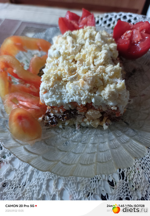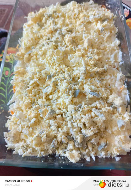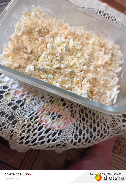 Из детства воспоминания, что "Мимозой" называли салат со свёклой сверху, а украшали яичными желтками. А без свеклы называли "Нежность". Но, видимо, в каждом регионе свои названия.