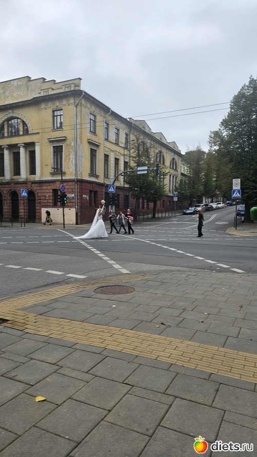 Сидя на остановке наблюдали, как фотографировалась свадебная пара, прямо на перекрестке