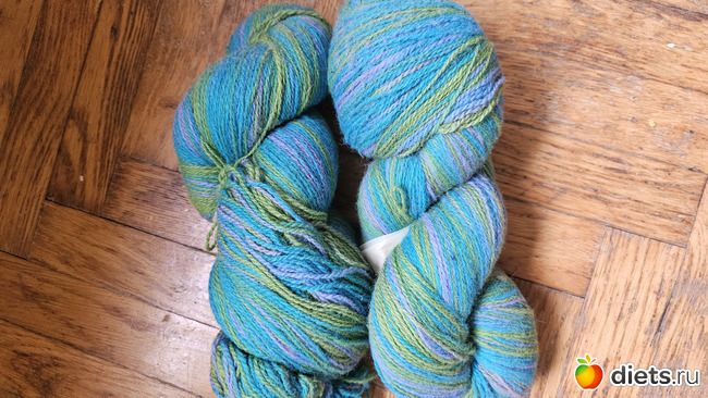 Пряжу она на нее из имеющихся запасов выбрала такую