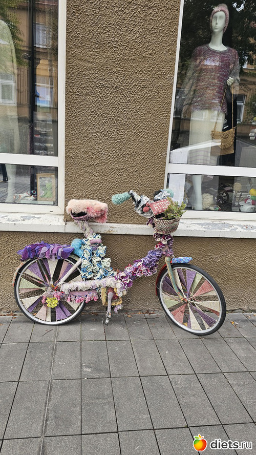 У нас велосипеды обычно с корзинкой устанавливают, в которую ставят горшки с цветами. А этот такой оригинальный.