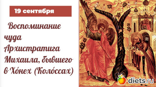 Архистратиг Михаил, явившись в сонном видении отцу немой девицы, еще не просвещенному святым Крещением, открыл ему, что его дочь получит дар речи, испив воды из источника.