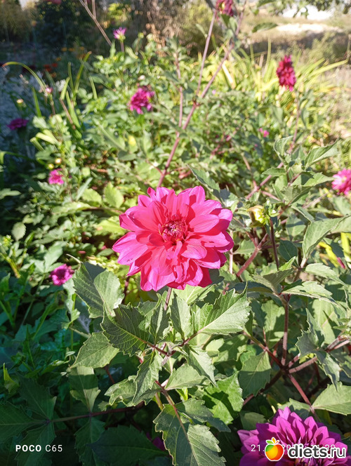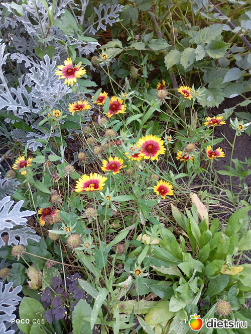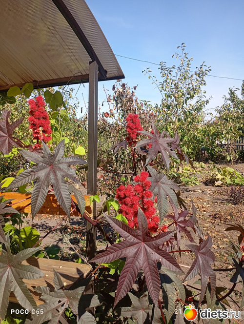 Гацания, гайлардия, георгины, клещевина, и вид из беседки.