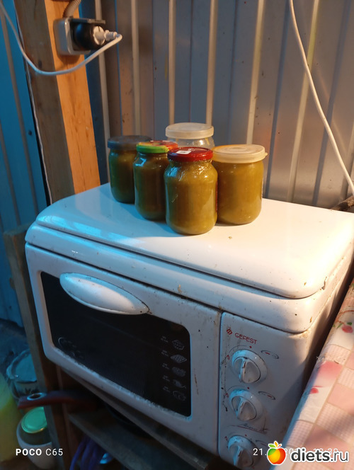 Бананы купила, ревень дал сок, поставила варить джем в летней кухне, пока варился ревень - почистила картошку на пюре в доме. Потом метнулась во двор, перемяла ревень блендером добавила бананы. Проварила, взблендернула всю массу. Просто выключила кастрюлю( в 8 л нержавеющей варила), разложу по банкам потом, сегодня стало лень. Дома помяла картофель в пюре, ела с квашеной капустой и куском филе индейки - отвал башки как вкусно