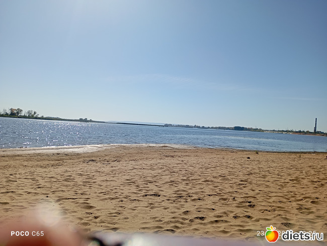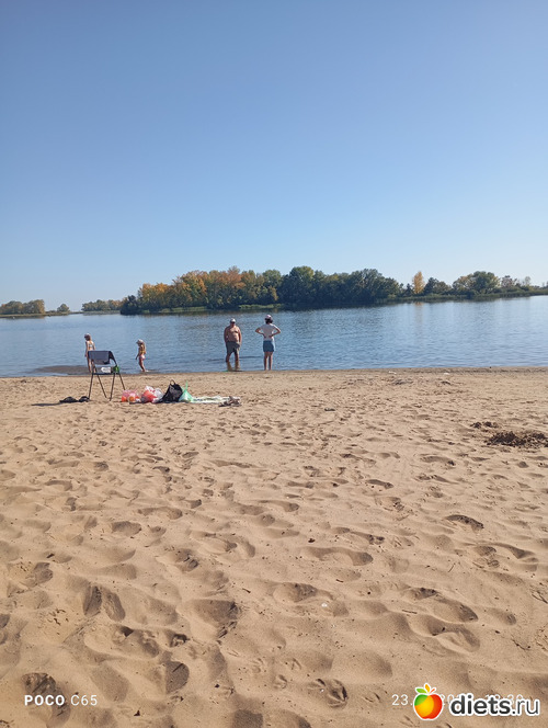 Солнце откровенно горячее. На пляже аншлаг: около 20 человек, в том числе семья с двумя маленькими девочками. Они бродят по воде, купаться им пока не разрешили. Вода реально холодная, но прекрасная И вообще тут красиво и здорово! Закрыть глаза на желтизну крон и представить, что начало июня. Но не получается. Хотя если смотреть в синее-синее небо, то запросто