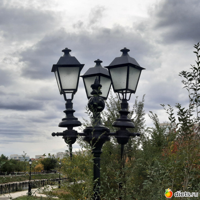 и красивые фонари, эффектно смотрящиеся на свинцовом небе