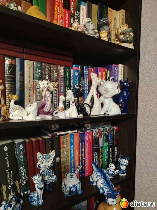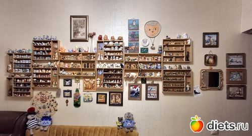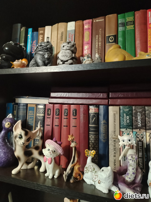 Я тоже коллекционирую фигурки котиков. И для их содержания приспособила бамбуковые лотки, предназначенные для столовых приборов - более бюджетный вариант, чем витрина с подсветкой
