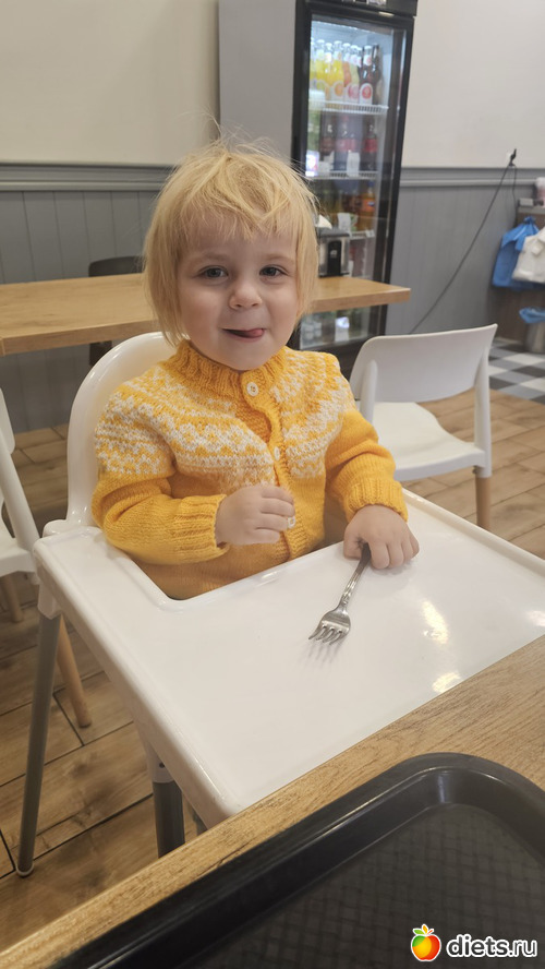 Отдельно ему пока не берем, никогда не понятно, будет ли есть. Так с наших тарелок ест, что хочет. В этот раз сьел 1 голубец, одну куриную котлету, часть картошки, весь салат