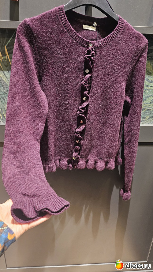 Идеальный кардиган, как по мне. Модный (с рюшами), более-менее состав, как для масс маркета (50% шерсти). Но надо вязать, рукава мне длинны, как во всей готовой одежде