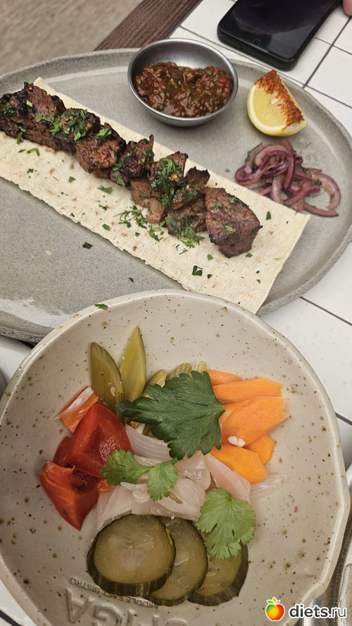 , муж по своим делам ходил, я по своим. Но пообедали вместе. Протестировали новый ресторан, который только что там открылся. Ресторан средневосточной кухни