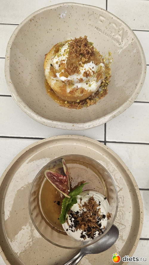 Десерты: басбуса, желе из фиги с сыром лабне. Не понравились