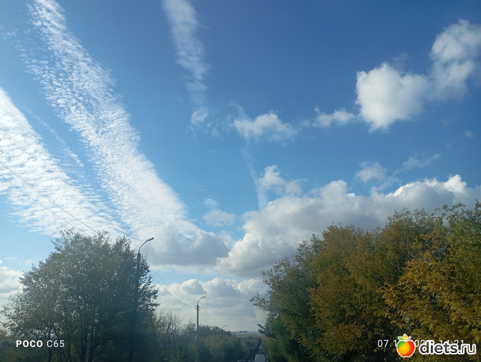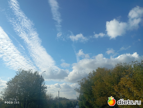Бассейн как всегда прекрасен! Взяли абонемент на 8 посещений на двоих на месяц. 750 р для пенсионеров. Закончится - еще возьмем. Получается одно посещение 94 р. Даром! А солнечно-то как! Небо синее, облака красивые, краски осени вокруг. Только деревья "лысеют" на глазах. На работу иду - так приятно ногами пошуршать по опавшим листьям!