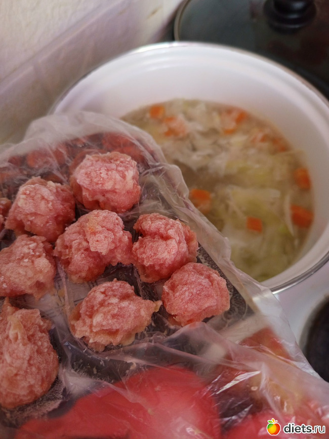 Обед. Муж забрал меня. Как же, хорошо что обед у меня целых два часа!!! Быстренько пообедали и я решила сварить овощной суп с фрикадельками!