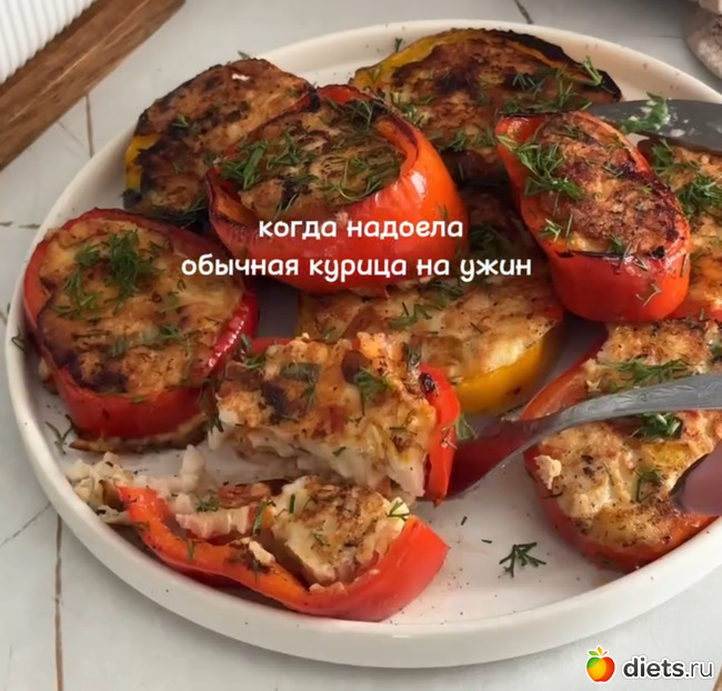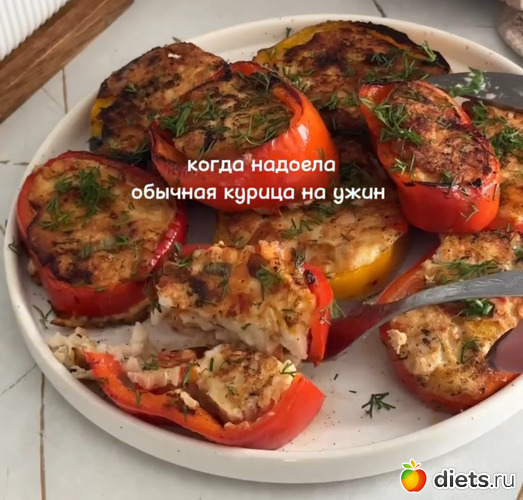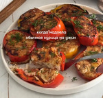 4. Выложить на сковороду кольца перца, наполнить начинкой.