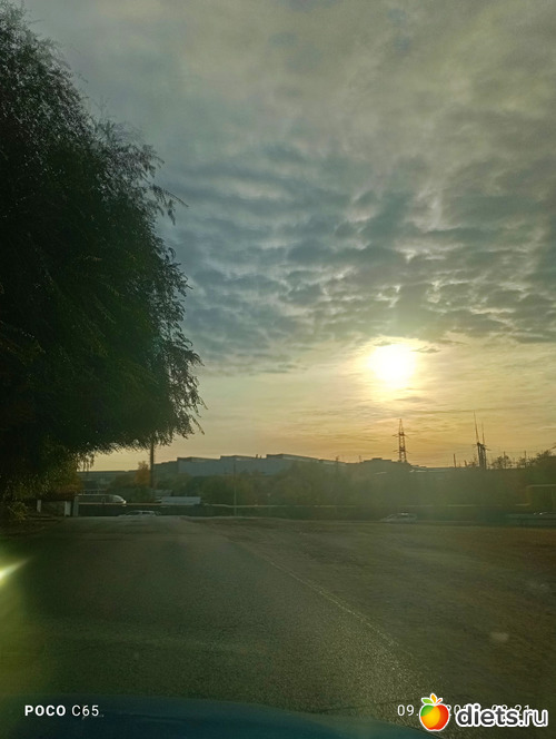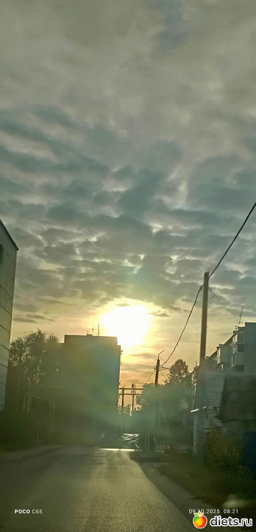 Утро с солнцем сквозь тучи, интересное небо. Так я люблю смотреть утром в небеса. Они каждый день разные.