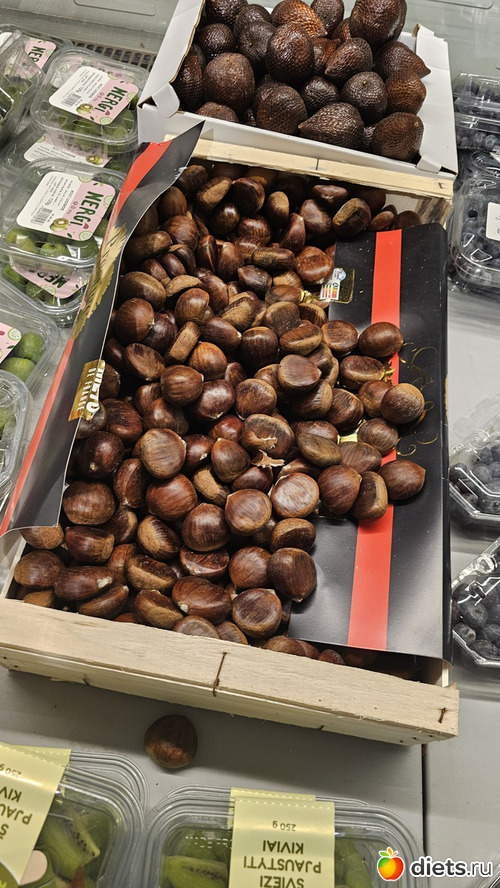 В магазине каштаны, цена 10 евро/кг. Не покупала
