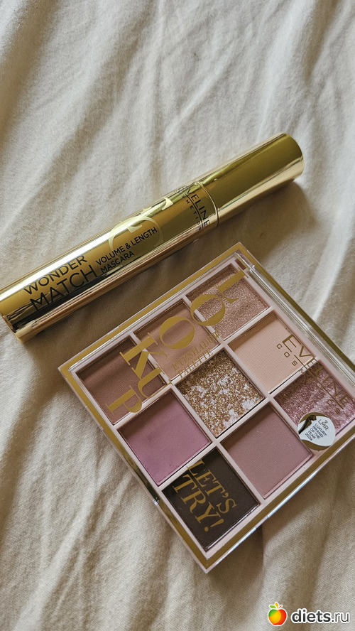 Тушь и палетка от Eveline. Тушь, кстати, как для этой бюджетной марки, дорогая, 17 или 18 евро