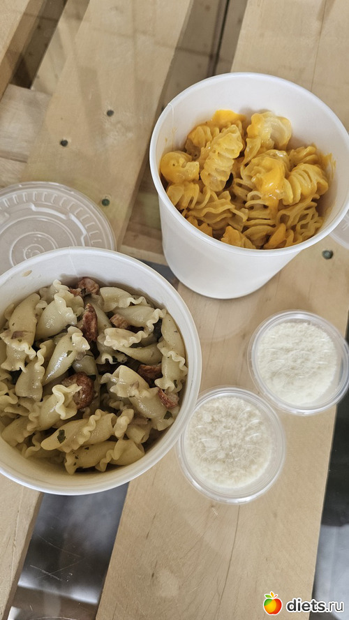 Заказали мак энд чиз и пасту с курицей и грибами