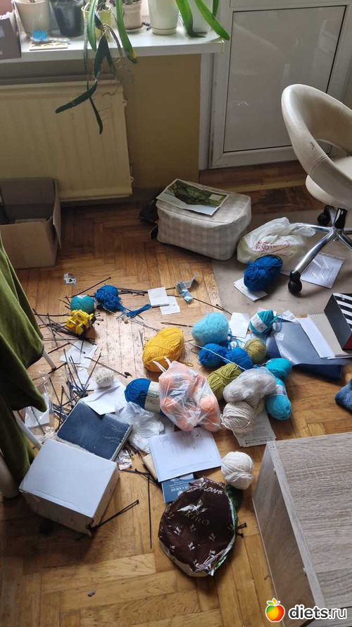 Классные развлечения малыш себе дома находит! И мамины вязальные принадлежности перебрал, и фиалки омолодил