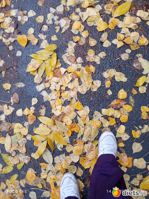 Сегодня у нас настоящее осеннее утро: прошел дождь, чуть моросит и обильный листопад. Красиво.