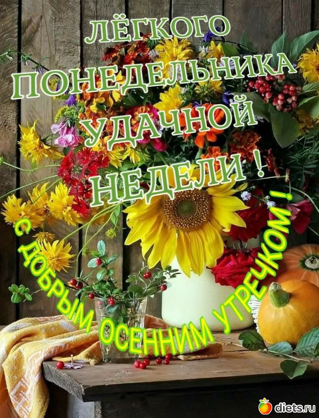 Пусть осень радует вас своей красотой, а эта неделя будет полна счастья и благополучия.