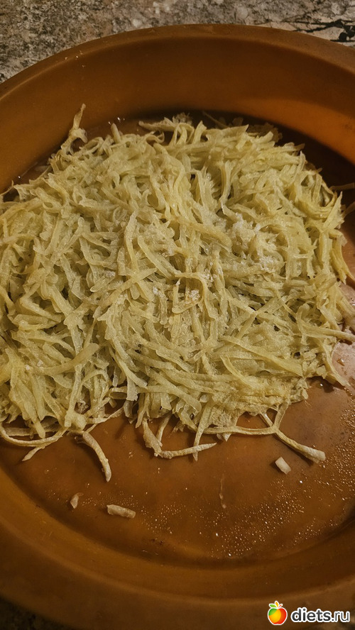 На ужин готовила жареную тертую картошку. Совсем не в тему моей диеты блюдо - не могу ни жареное, ни сметану. Решила эксперимента ради часть тертой картошки запечь в микре в силиконовой форме