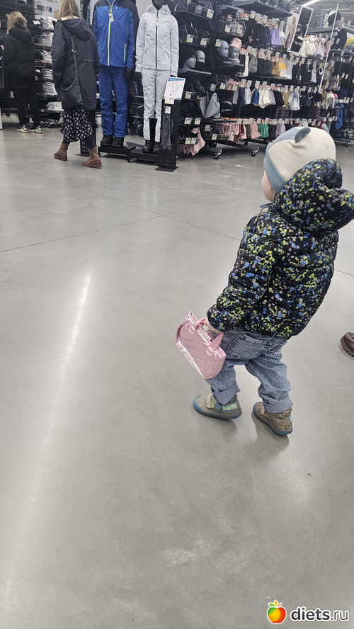 Шли вообще за трениками - она резко выросла из всех. Треников не купили, но нахапали всякого столько, что пришлось звонить мужу просить, что б он с машиной нас забрал