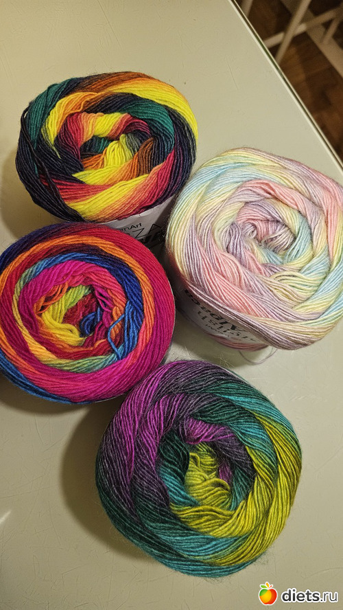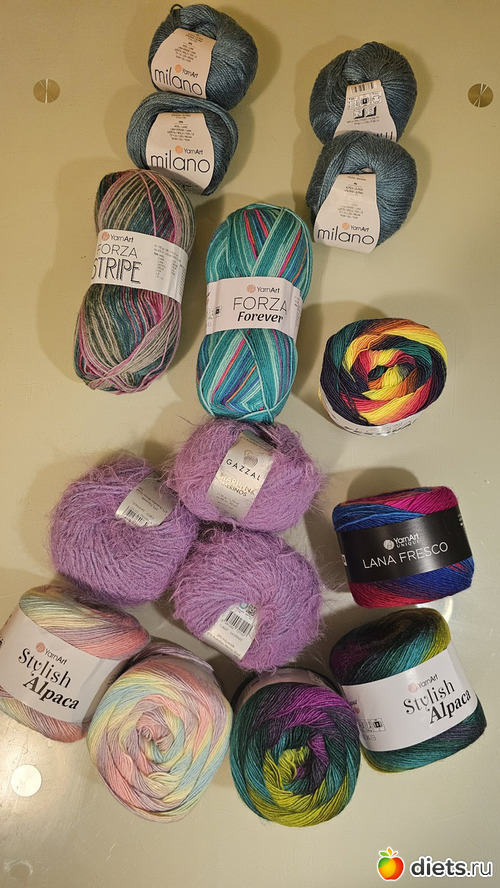 Получила заказ пряжи. Выбирали вместе с дочкой. Прошлись только по турецким новинкам - любопытно попробовать новое, и цена не кусается. Вязать сразу не буду, это все в коллекцию