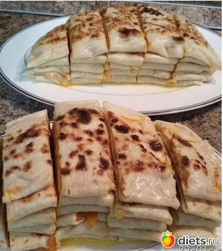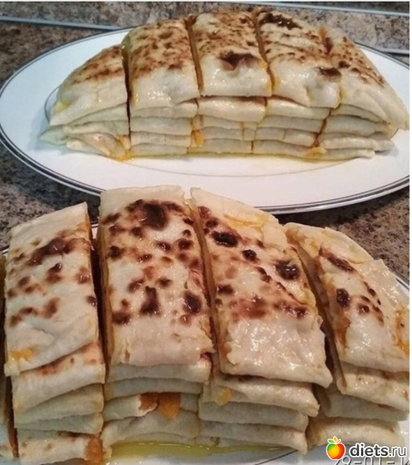 Края лепешки выровнять "под тарелку", или обрезать ножом для пиццы.