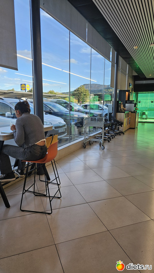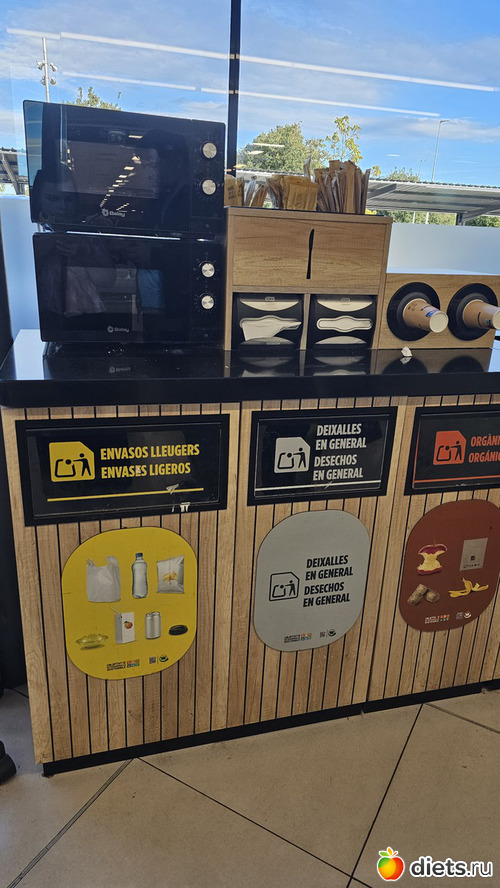 С ужином сегодня решили так: заехали в Меркадону, там есть станция с микроволновками, можно сразу разогреть, что купил, и столики, сесть и поесть