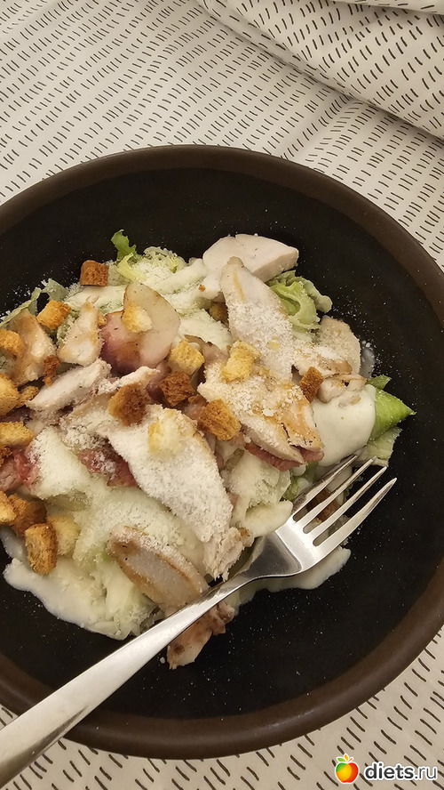 салат цезарь - странноватый, мне не очень. В составе пекинка, курфиле, хамон, сухарики, сыр, майонез