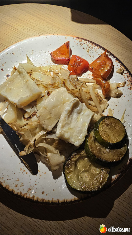 Рыба на пару с жареной капустой - совсем-совсем не вкусно, капусту не смогла заставить себя сьесть (в меню было написано, что на гарнир будет картошка)