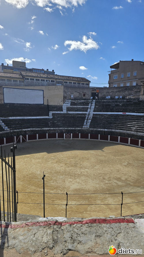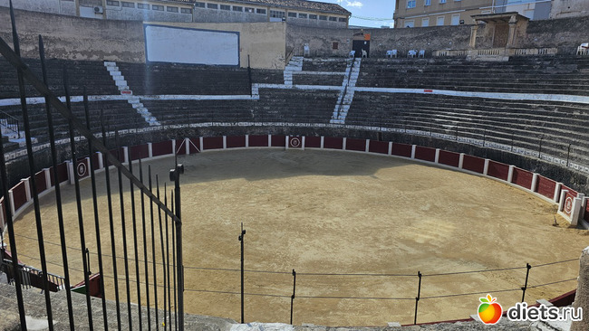В этом же городке посетили еще один обьект: арену для корриды. Коррида еще есть в Испании в наши дни, но именно эта арена работает как музей. А в эти дни и как музей не работала, закрыта на ремонт. Но был там такой балкон, с которого можно было посмотреть на саму арену
