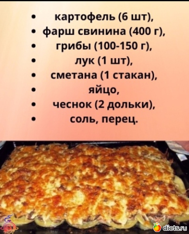 Diets.ru Запеканка из фарша, картофеля, грибов