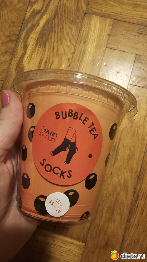 Носки, упакованные как бабл-чай, в подарок дочке на др