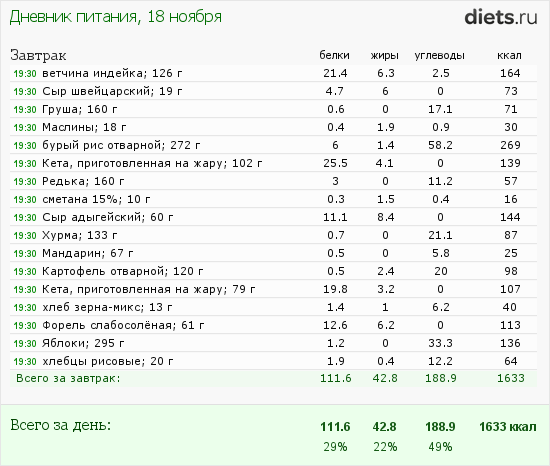 По еде все стабильно. Немного не добрала углеводов. Нужно завтра подкорректировать завтрак. Так как записываю уже по факту, то сегодня корректировать уже нечего. Я ужинаю в 19 и после ужина ничего не ем. Так что как есть, так и есть.