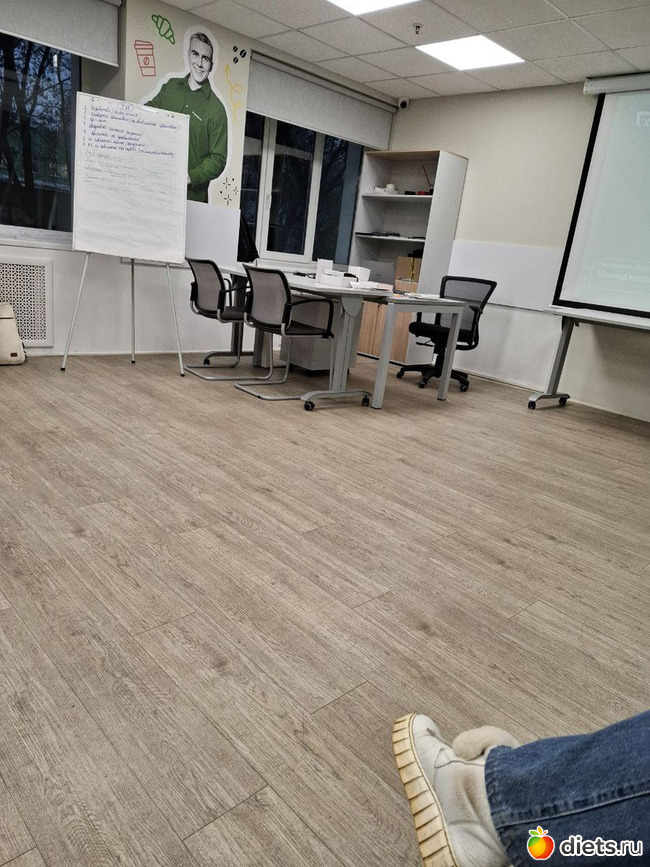 Это мой учебный класс. Нас 9 человек, один молодой человек 27 лет, а разброс остальных менеджеров кафе - самый разнообразный: от девчонки-рокера до дамы весьма бальзаковского возраста.