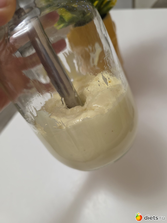 Отправляем ВСЕ ингредиенты разом в высокий стакан или банку. Да, масло тоже! Никаких сложностей.