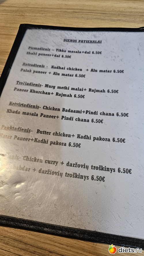 Меню. Каждый день недели только два блюда. Но каждый день разные
