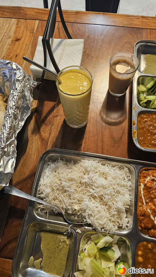 Напитки взяли манговый ласси и chai типо чаек их из пряностей.
